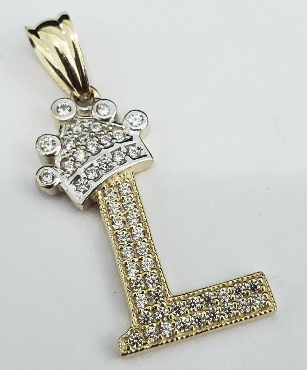 14k Yellow Gold Crown Initial Alphabet Letter L Pendant Charm King Free Chain Ebay